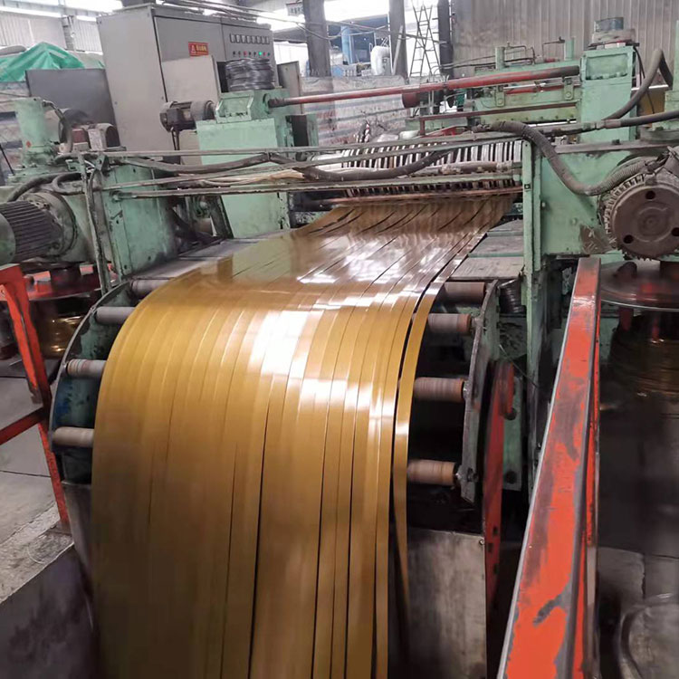 ແຜ່ນຕັດສີທອງ PPGI ແມ່ນອີງໃສ່ແຜ່ນສັງກະສີຈຸ່ມຮ້ອນທີ່ທາສີໄວ້ລ່ວງໜ້າ, ເຫຼັກອາລູຊິງທີ່ທາສີລ່ວງໜ້າ, ເຫຼັກເຄືອບສັງກະສີ, ແຜ່ນສັງກະສີໄຟຟ້າ, ແລະອື່ນໆ. ຫຼັງຈາກການທາສີພື້ນຜິວ (ການຫຼໍ່ຫຼອມສານເຄມີ ແລະ ບຳບັດການປ່ຽນສານເຄມີ), ການເຄືອບອິນຊີໜຶ່ງ ຫຼືຫຼາຍຊັ້ນແມ່ນໃຊ້. ຢູ່ເທິງພື້ນຜິວ, ແລະຫຼັງຈາກນັ້ນຜະລິດຕະພັນໄດ້ຖືກອົບແລະປິ່ນປົວ.ສີທອງ PPGI slittings ແມ່ນຍັງມີຊື່ເພາະວ່າເຫຼັກລວດສີໄດ້ຖືກເຄືອບດ້ວຍສານເຄືອບອິນຊີຂອງສີທີ່ແຕກຕ່າງກັນ, ເອີ້ນວ່າ coils ເຄືອບສີ prepainted ເຫຼັກ galvanized.